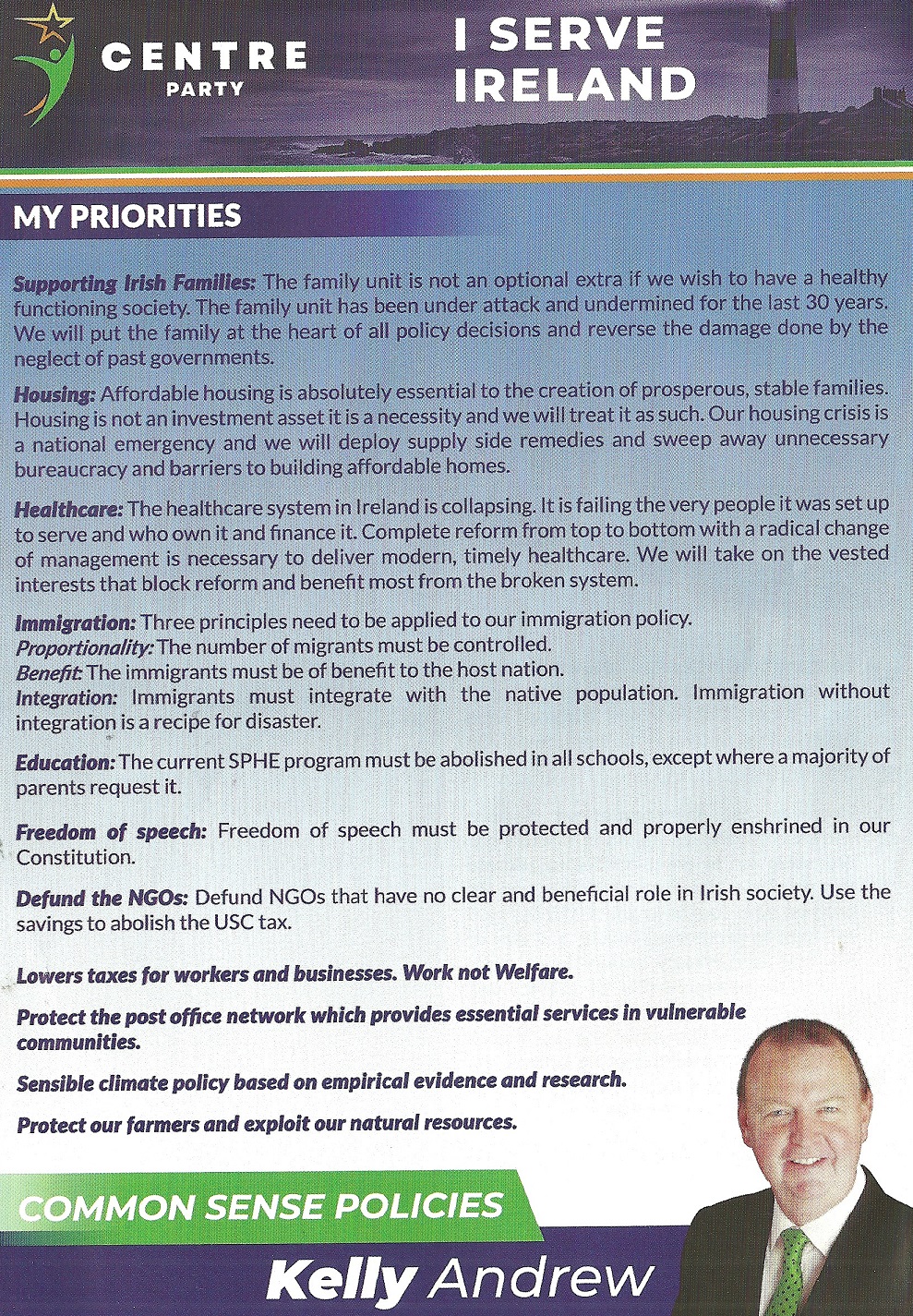 Leaflet from Andrew Kelly – The Centre Party – Dublin Central – 2024 General Election » AndrewKellyGE24ab