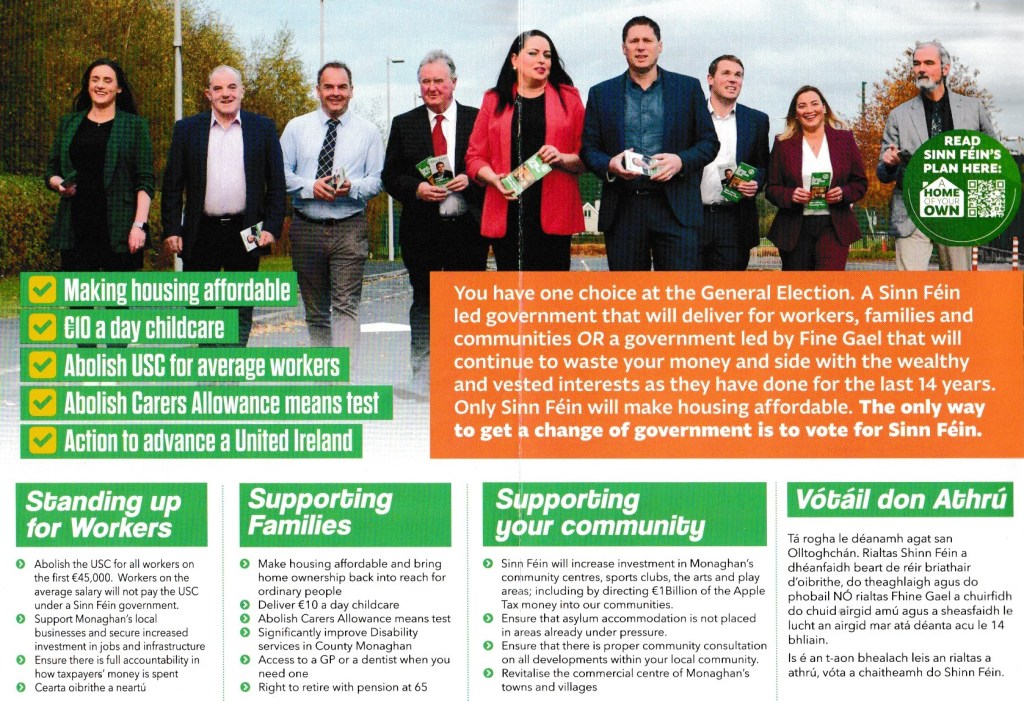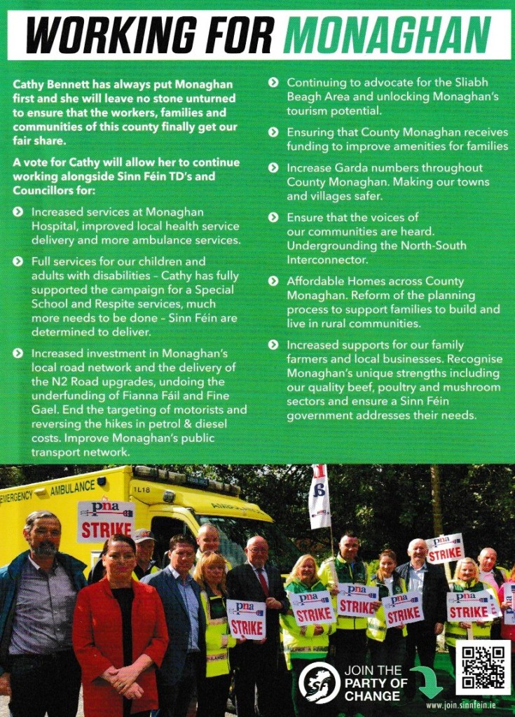 A Leaflet from Cathy Bennett who is running for Sinn Féin in Cavan Monaghan in the 2024 General Election