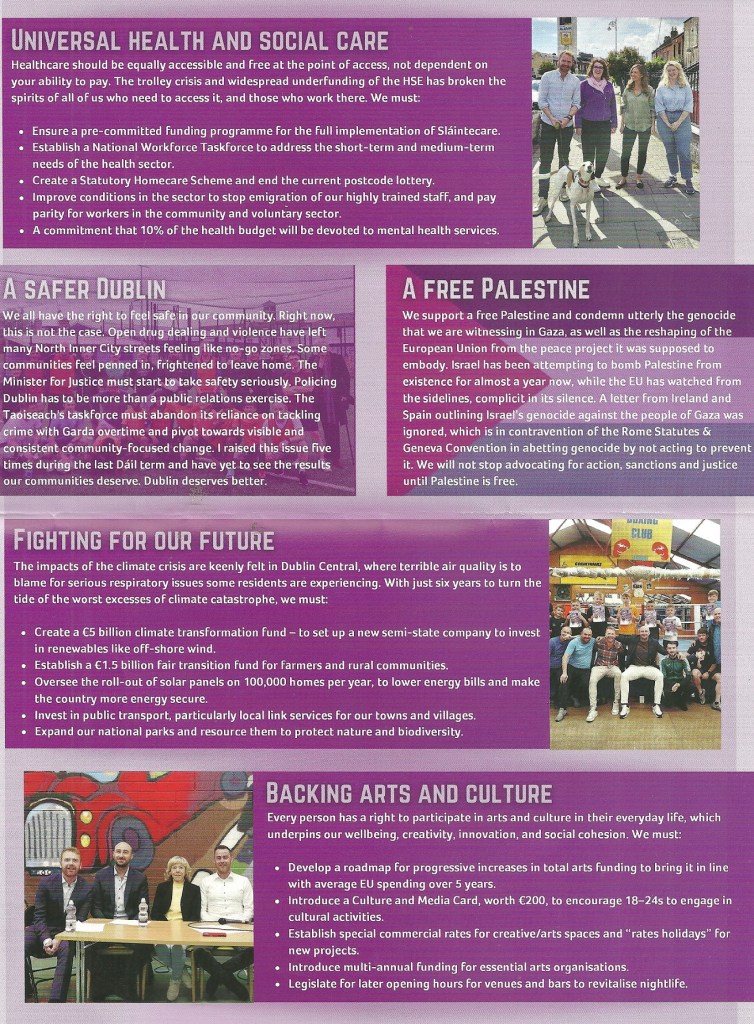 A Leaflet from Gary Gannon who is running for The Social Democrats in Dublin Central in the 2024 General Election