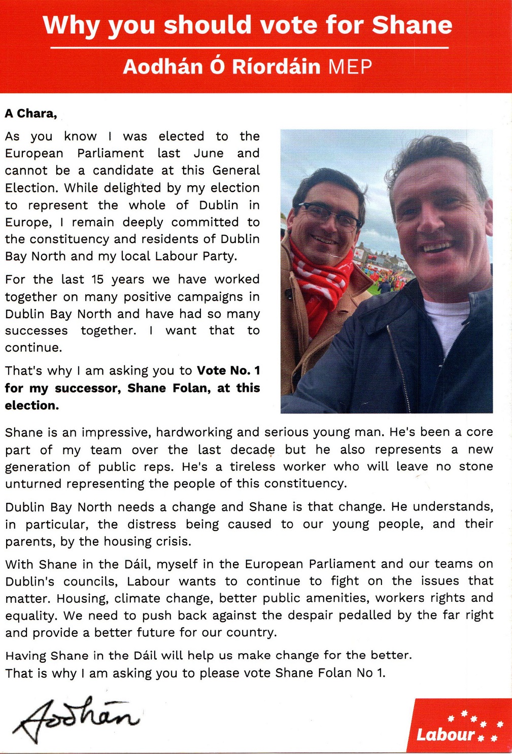 Leaflet from Shane Folan – Labour – Dublin Bay North – 2024 General Election » shanefolanlabdbn24b