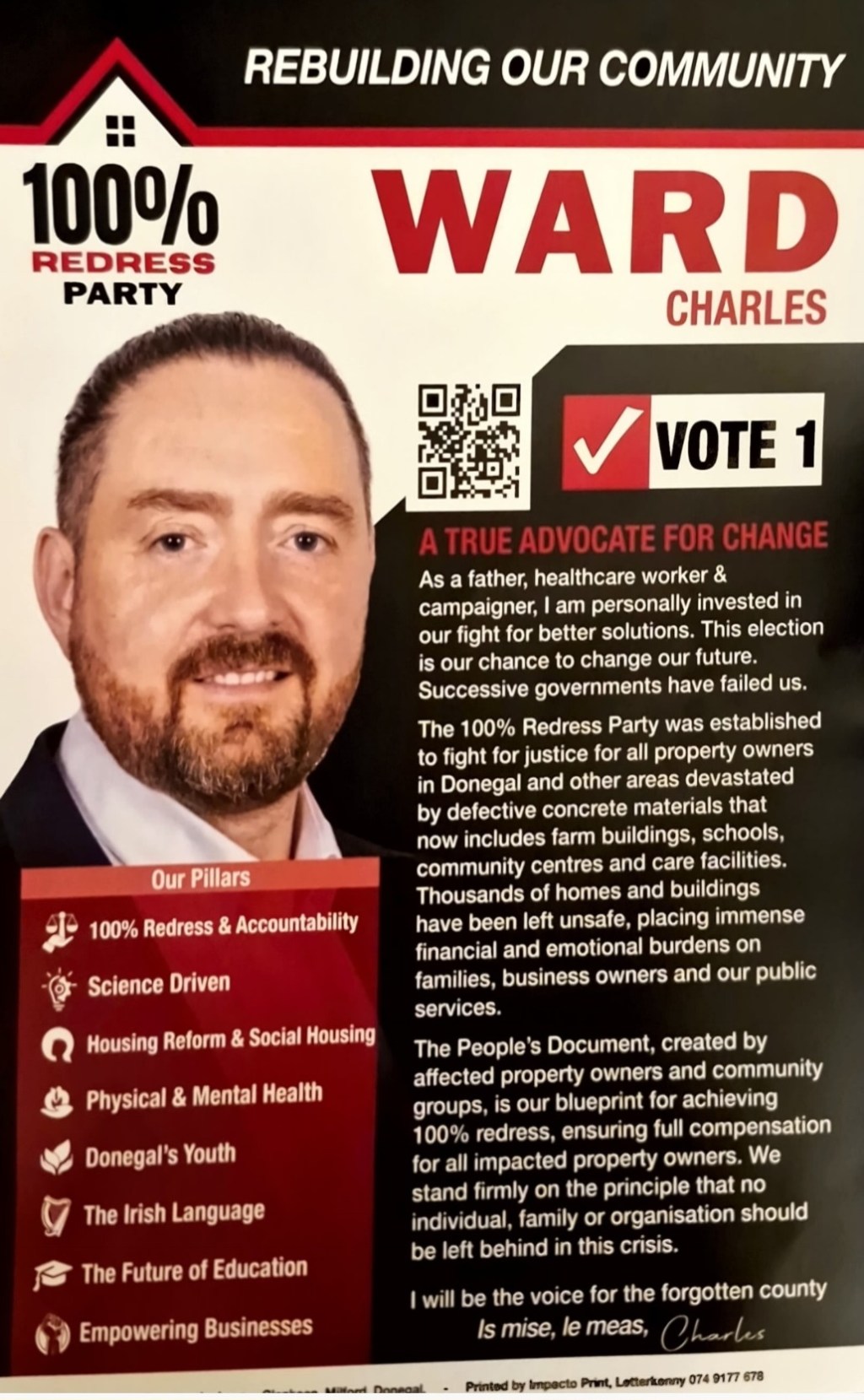 Leaflet from Charles Ward – 100% Redress Party – Donegal – 2024 General Election » CharlesWardGE24a