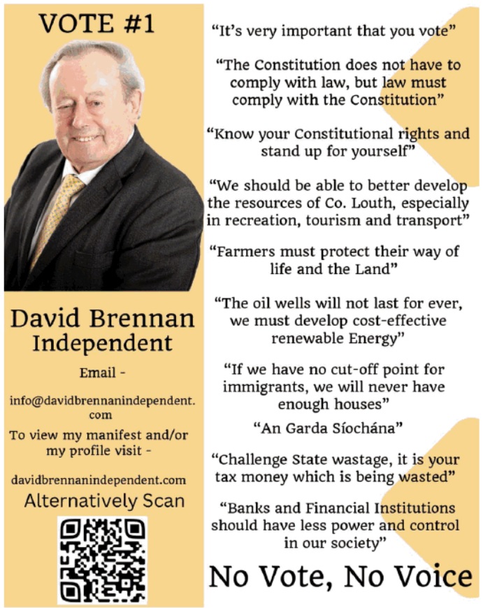 A leaflet from David Brennan who is running as an Independent in Louth in the 2024 General Election
