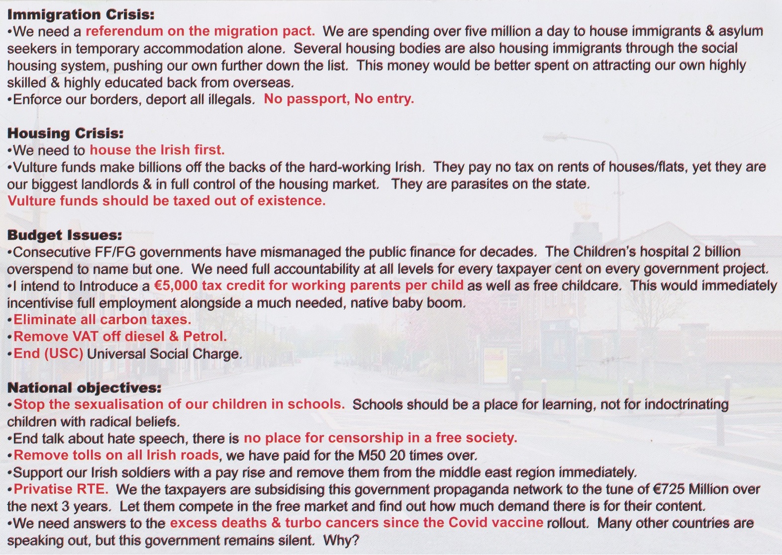 A Leaflet from Tom McDonnell who is running as an Independent in Kildare South in the 2024 General Election