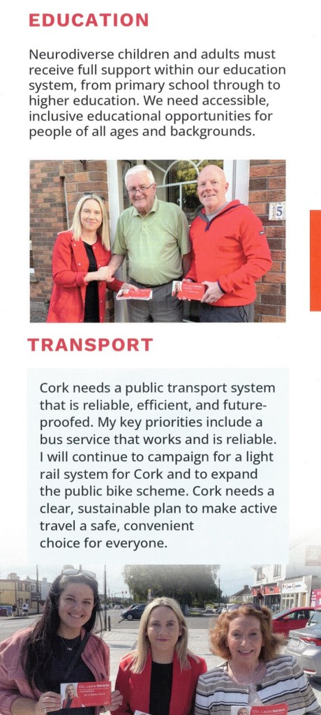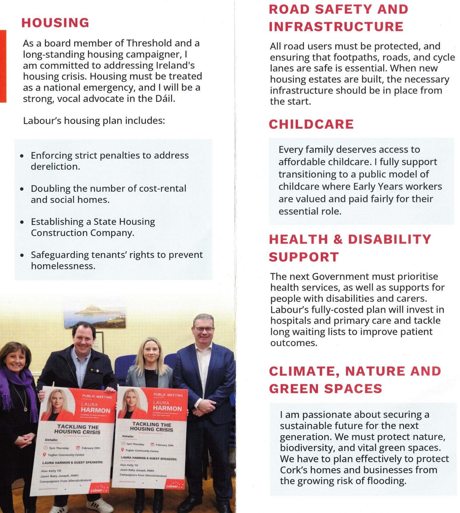 A leaflet from Laura Harmon who is running for Labour in Cork South Central in the 2024 General Election