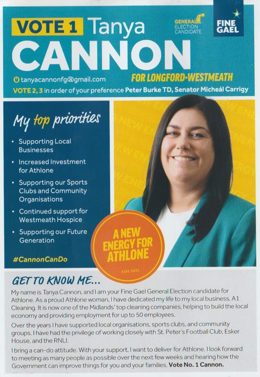 Leaflet from Tanya Cannon – Fine Gael – Longford Westmeath – 2024 General Election » TanyaCannonGe24a