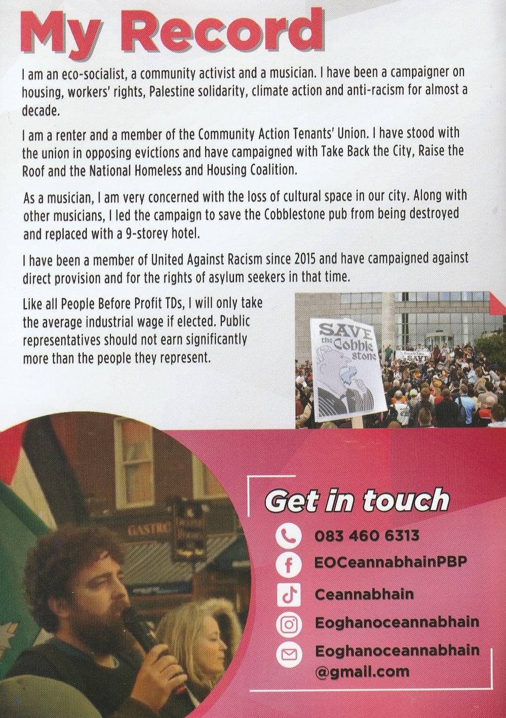 Leaflet from Eoghan Ó Ceannabháin – People Before Profit – Dublin Central – 2024 General Election » EoghanÓCeannabháinGE24b