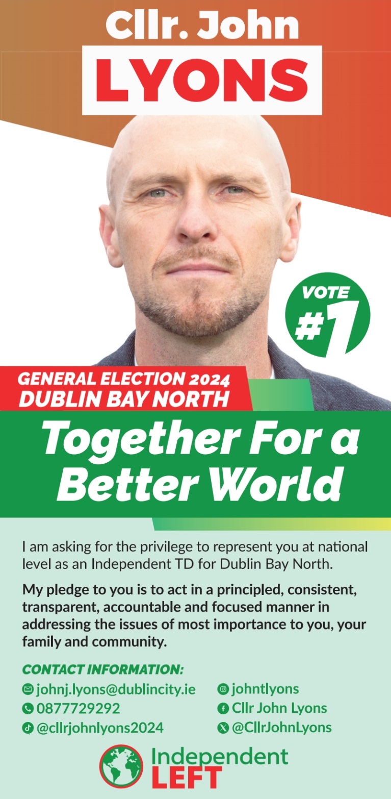 Leaflet from John Lyons – Independent Left – Dublin Bay North – 2024 General Election » JohnLyonsGE24a