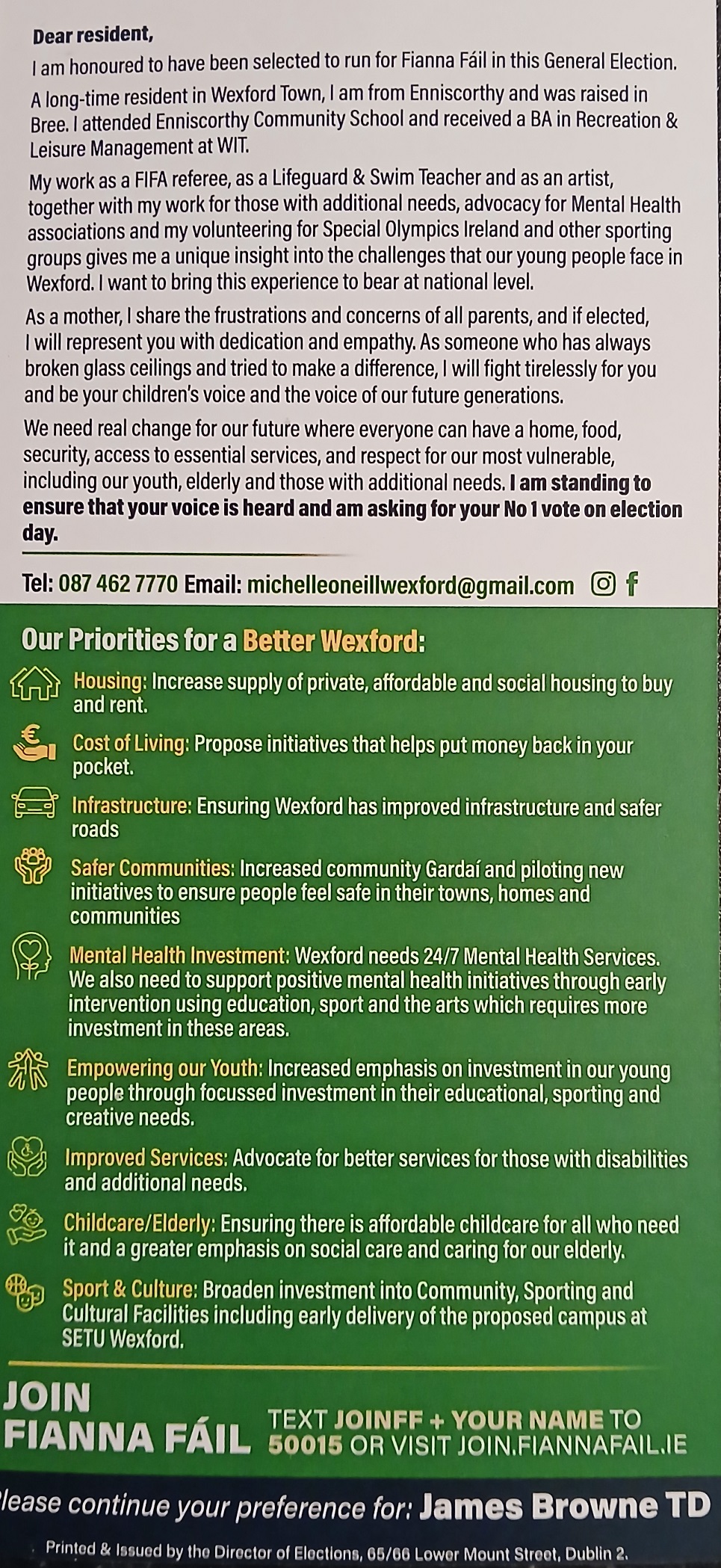 Leaflet from Michelle O’Neill – Fianna Fáil – Wexford – 2024 General Election » MichelleONeillGE24b