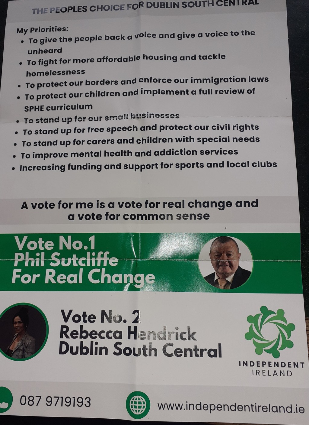 Leaflet from Philip Sutcliffe – Independent Ireland – Dublin South Central – 2024 General Election » PhilipSutcliffeGE24b