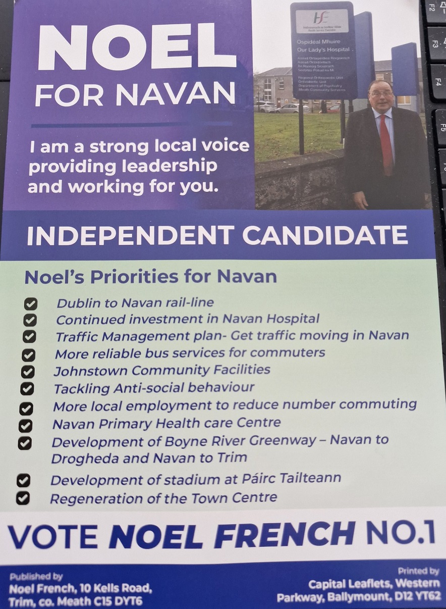 Leaflet from Noel French – Independent – Meath West – 2024 General Election » NoelFrenchGE24b