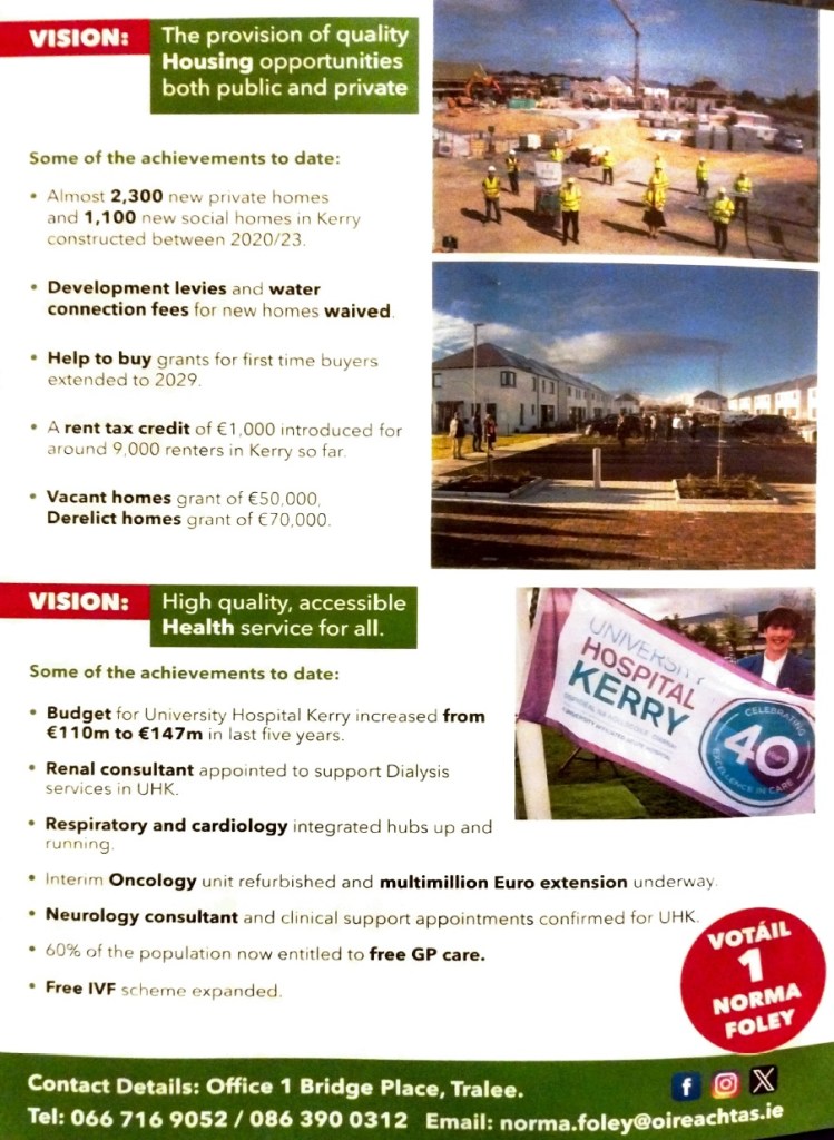 A Leaflet from Norma Foley who is running for Fianna Fáil in Kerry in the 2024 General Election