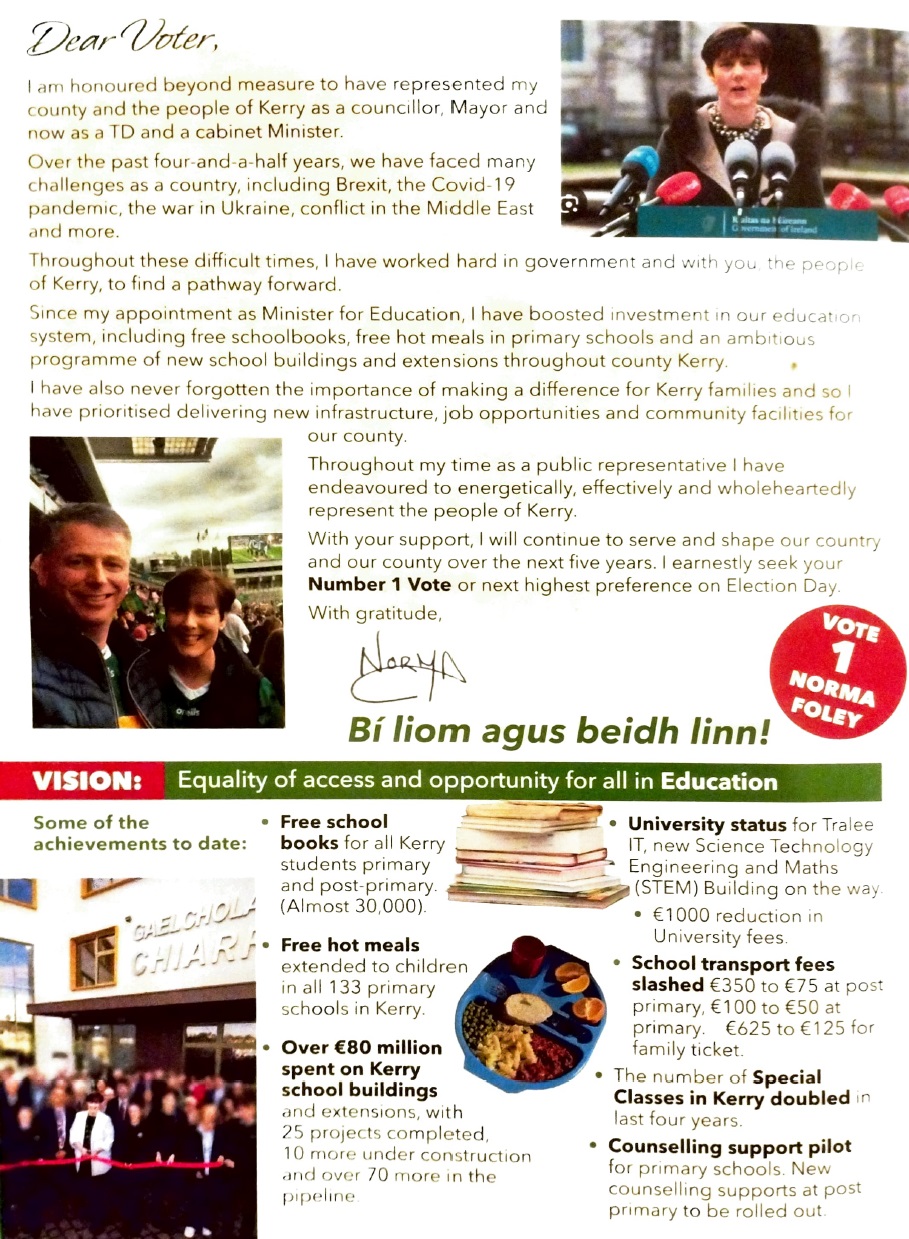 Leaflet from Norma Foley – Fianna Fáil – Kerry – 2024 General Election » NormaGE24d