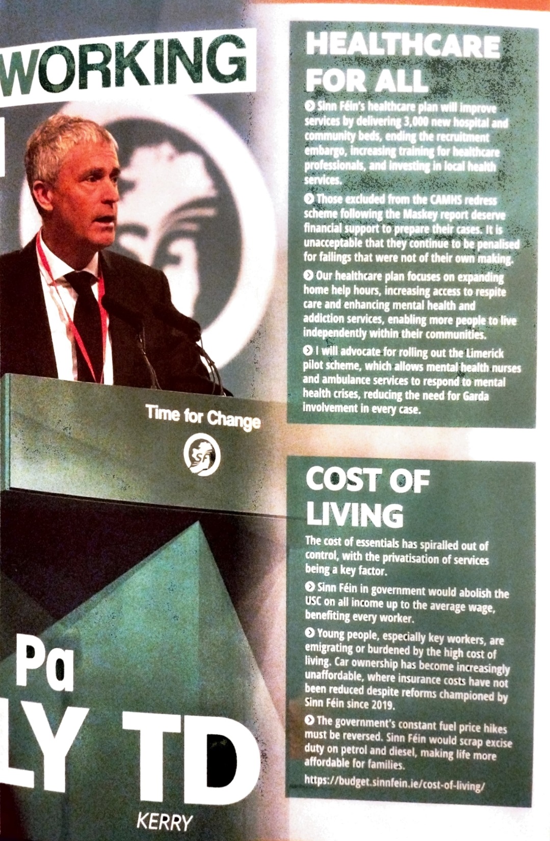 A Leaflet from Pa Daly who is running for Sinn Féin in Kerry in the 2024 General Election
