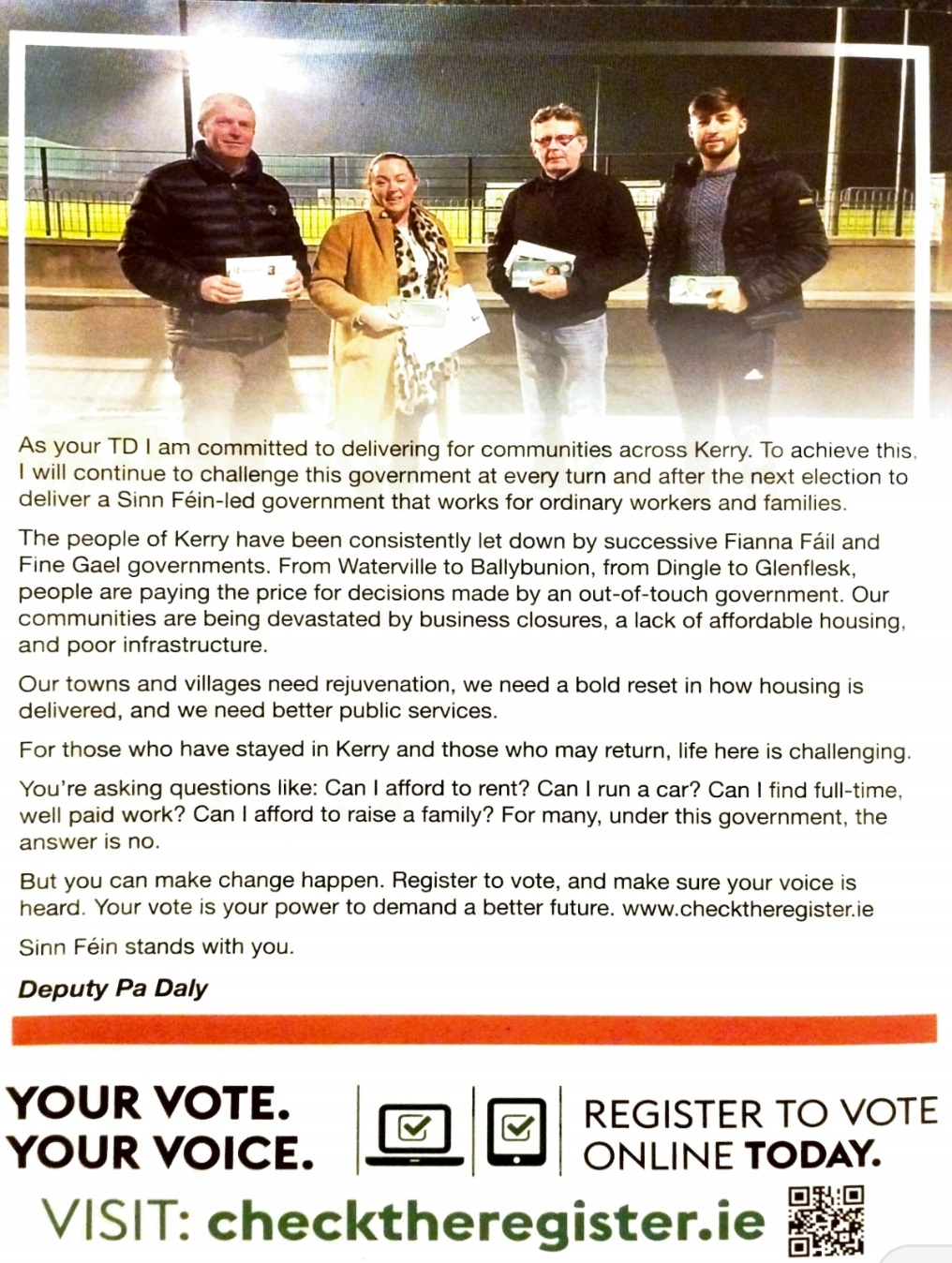 Leaflet from Pa Daly – Sinn Féin – Kerry – 2024 General Election » PaDalyGE24d