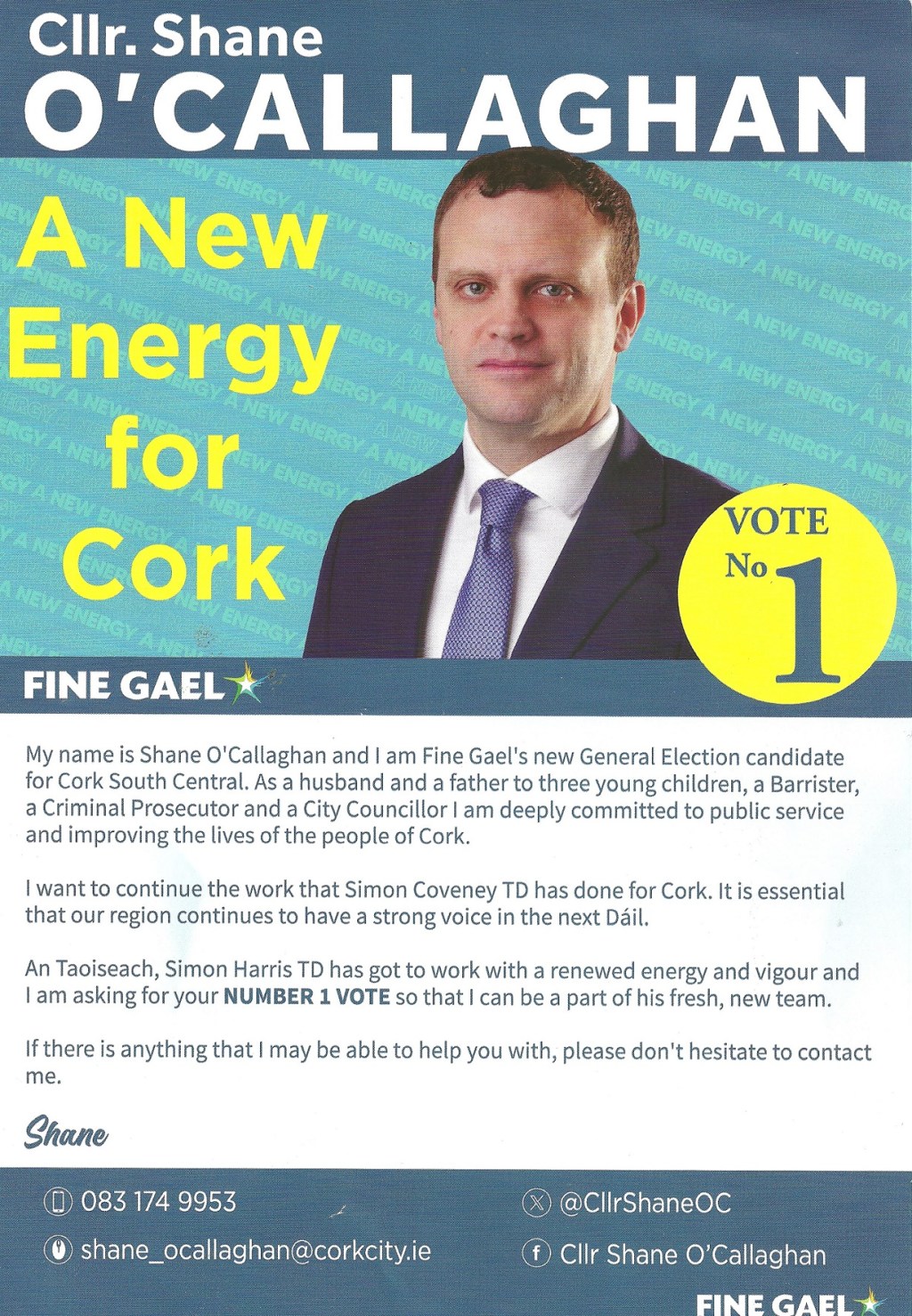 Leaflet from Shane O’Callaghan – Fine Gael – Cork South Central – 2024 General Election » ShaneOCallaghanGE24a