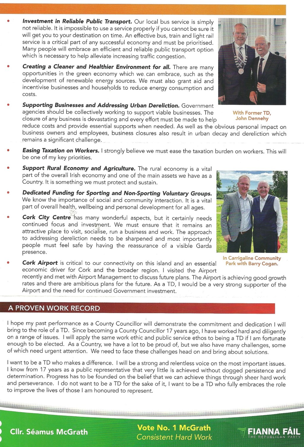 Leaflet from Séamus McGrath – Fianna Fáil – Cork South Central – 2024 General Election » SeamusMcGrathGE24c