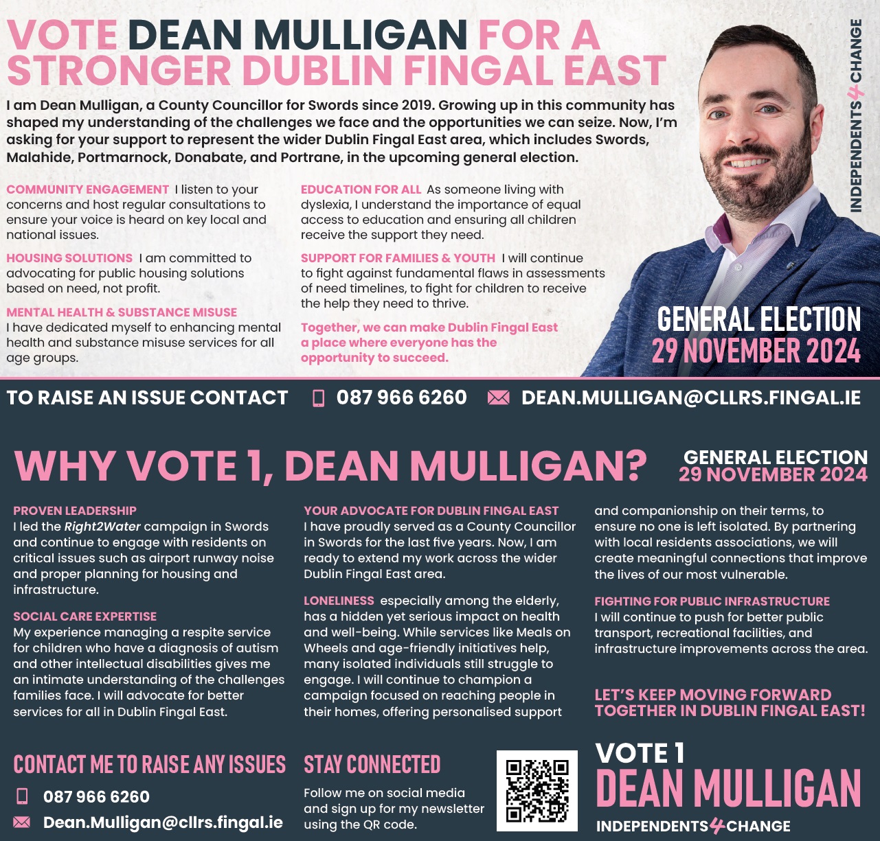 Leaflet from Dean Mulligan – Independents4Change – Dublin Fingal East -2024 General Election » DeanMulliganGE24a