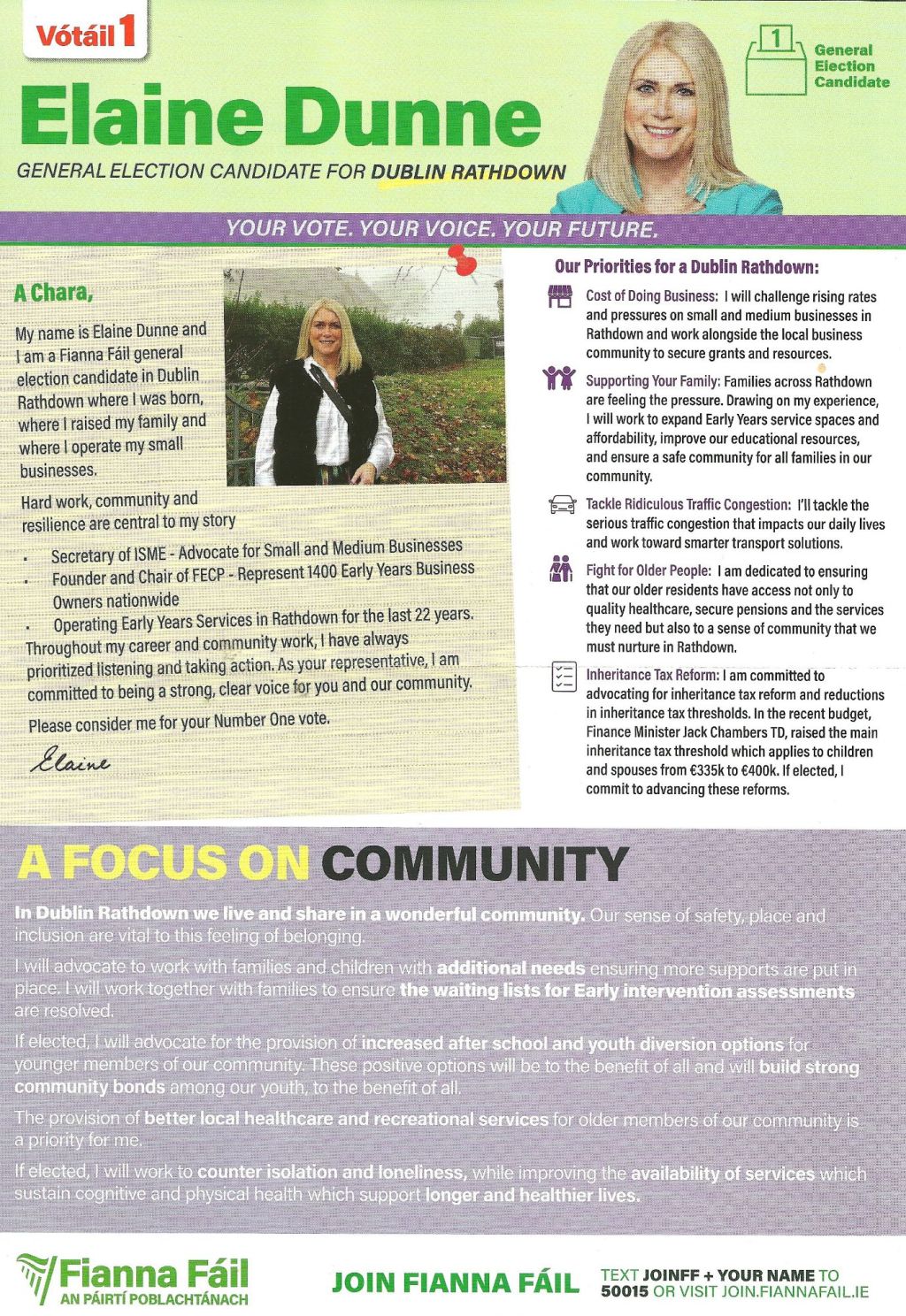 Leaflet from Elaine Dunne- Fianna Fáil- Dublin Rathdown- 2024 General Election » photoscan (150)777334531794494876.