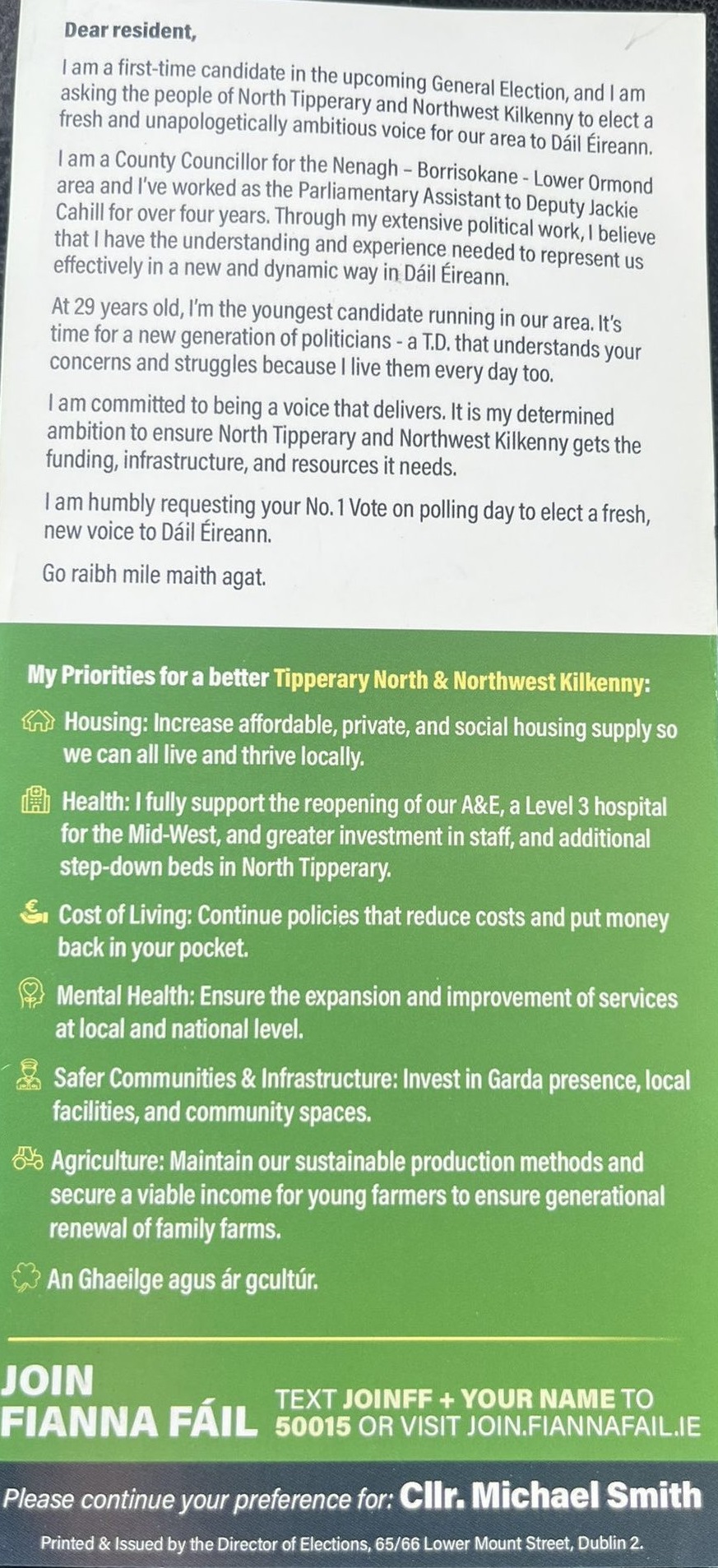 Leaflet from Ryan O’Meara – Fianna Fáil – Tipperary North – 2024 General Election » RyanOMearaGE24b