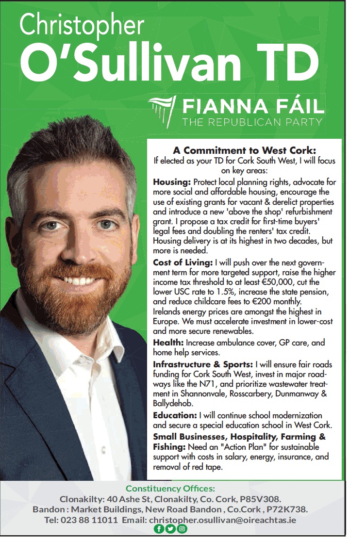 Leaflet from Christopher O’Sullivan – Fianna Fáil – Cork South West – 2024 General Election » ChristopherOSullivanGE24a