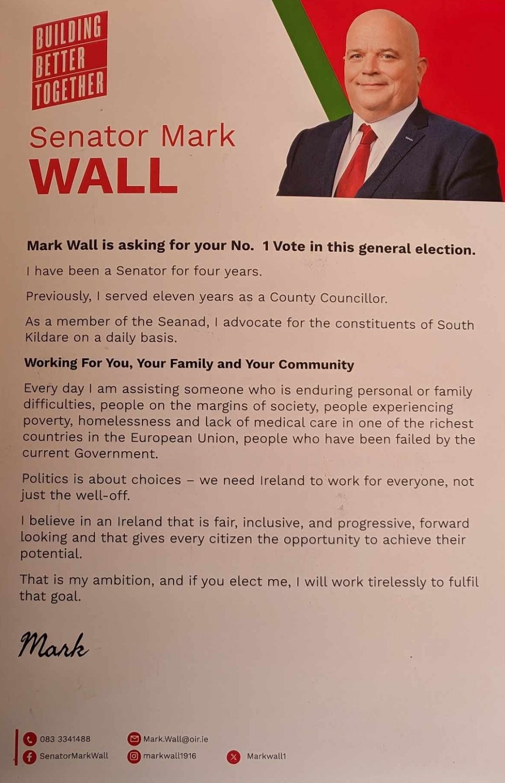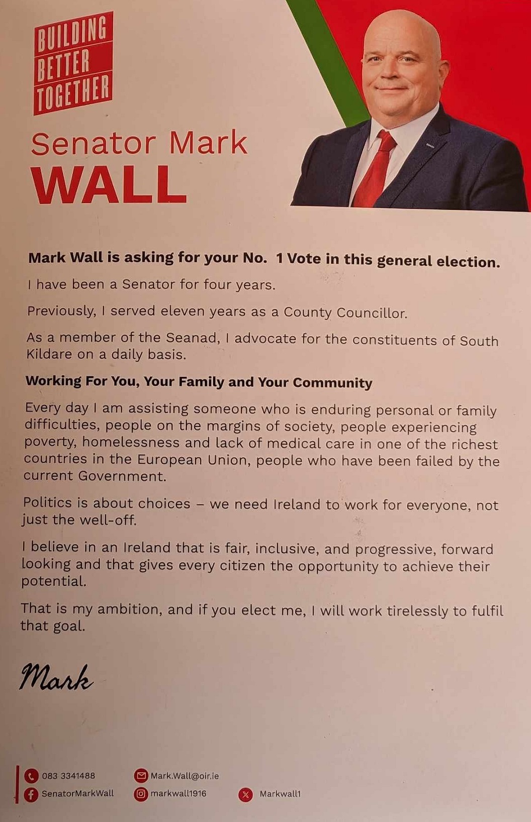 Leaflet from Mark Wall – Labour – Kildare South – 2024 General Election » MarkWallGE24b
