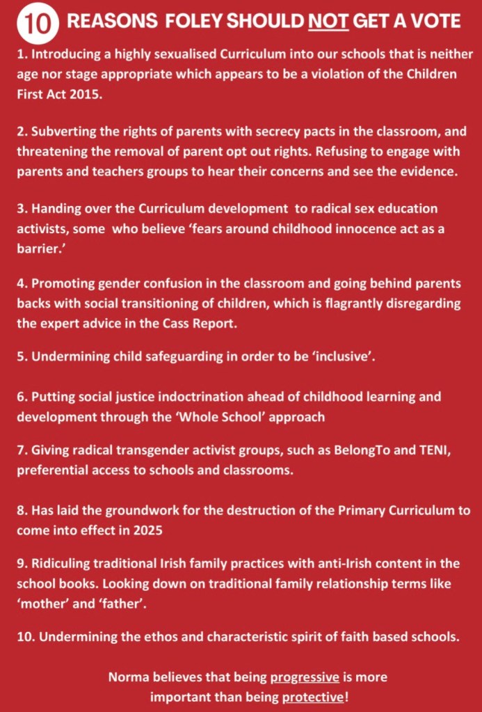 A “No Votes – Norma Foley” leaflet produced by an anonymous ,I assume, Conservative Group from the 2024 General Election Campaign