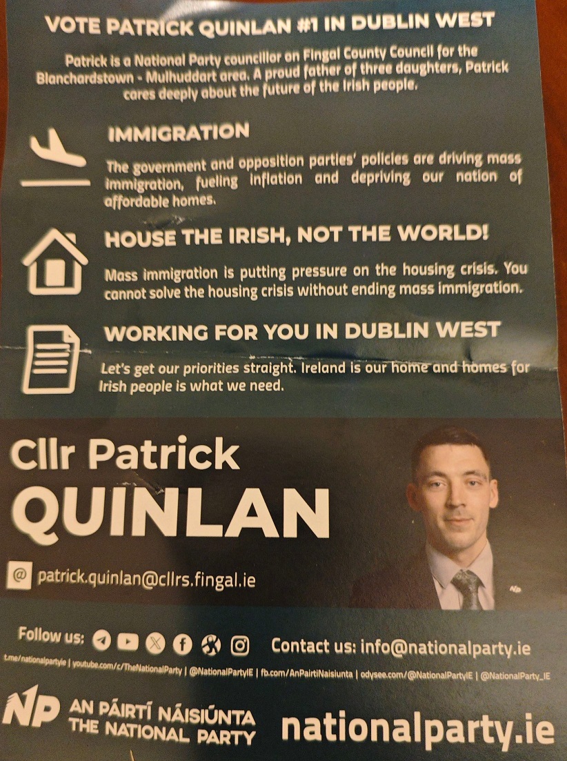 Leaflet from Patrick Quinlan – National Party – Dublin West – 2024 General Election » PatrickQuinlanGE24b