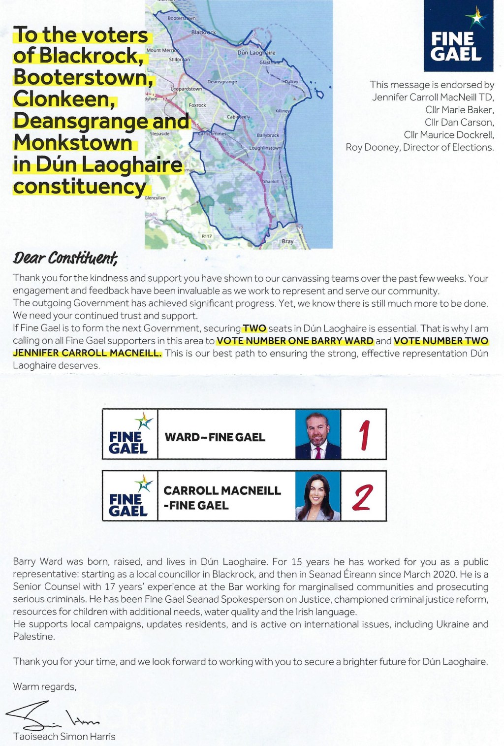 Vote Management Leaflet form Fine Gael in Dún Laoghaire – 2024 General Election » FGVoteDL3