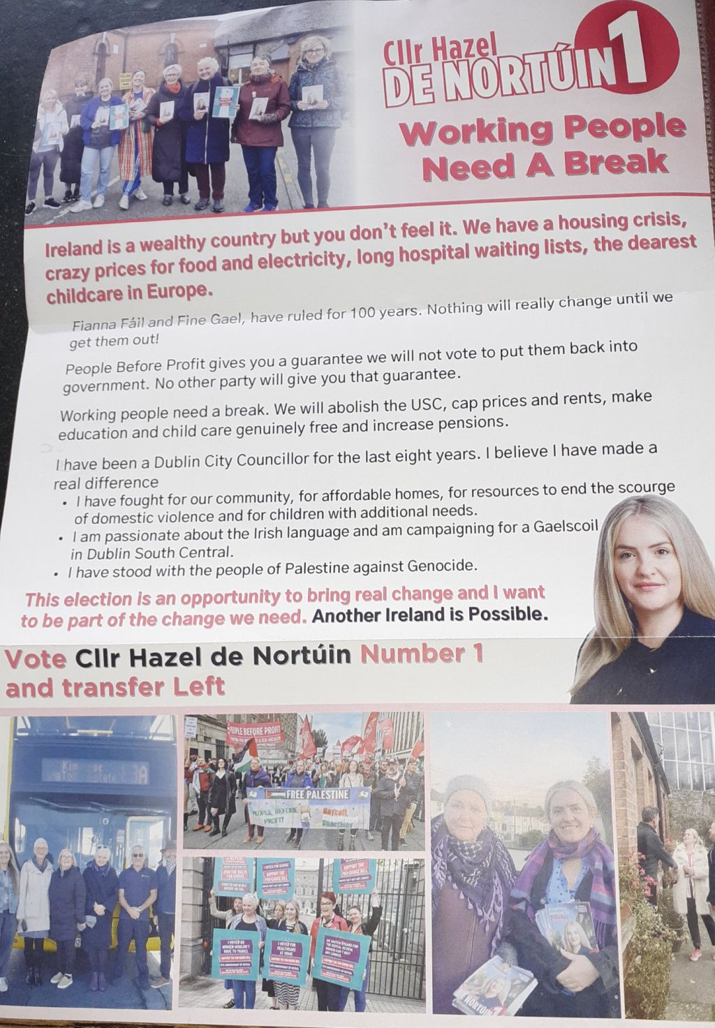 Leaflet with Bríd Smith endorsement from Hazel De Nortúin- People Before Profit- Dublin South Central- 2024 General Election » 20241128_1124322496969037311957169