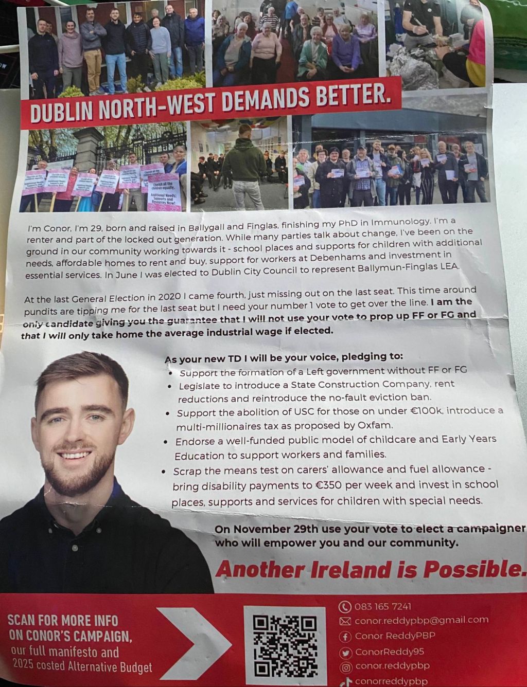 Leaflet from Conor Reddy – People Before Profit- Dublin North West- 2024 General Election » img_67552555139255498289342