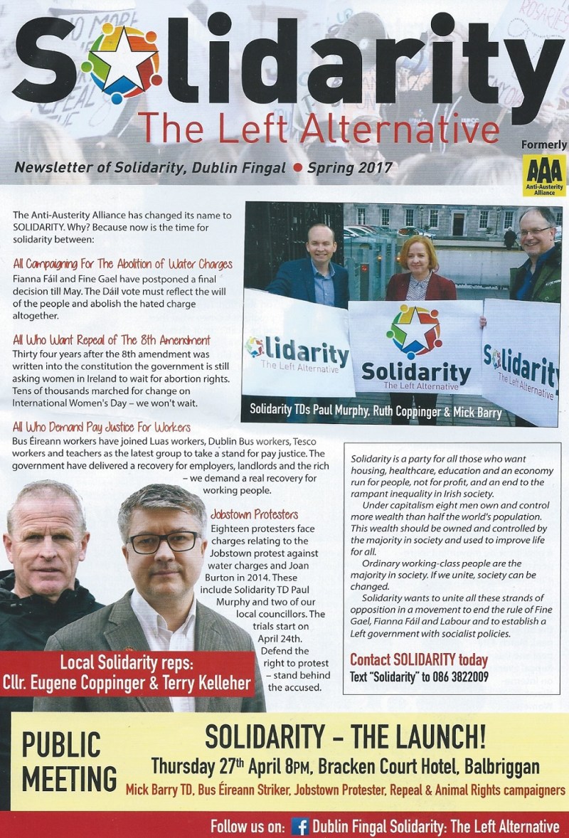 Spring 2017 Newsletter from Solidarity -Dublin Fingal April 27, 2017