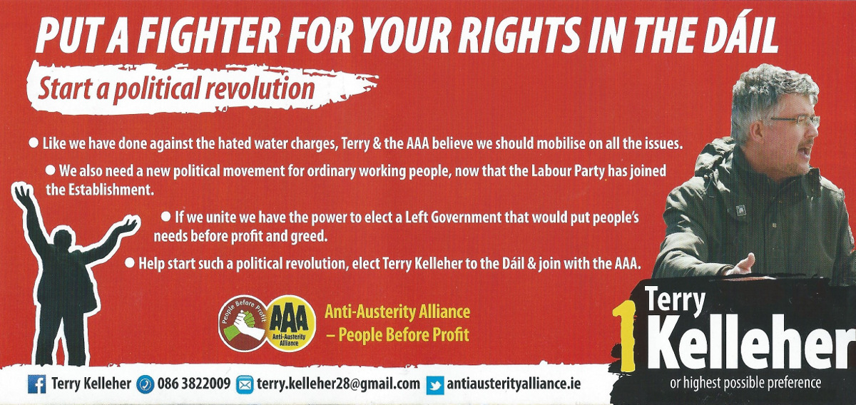 Tags: 2016 General Election, AAAPBP, Anti Austerity Alliance, dublin fingal, Irish Politics, Politics, Terry Kelleher