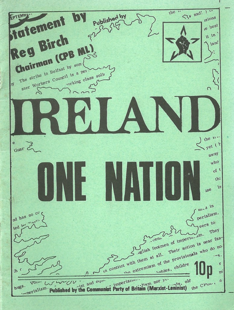 “Ireland – One Nation” a booklet produced by The Communist Party of Great Britain (Marxist Leninist) circa 1974. Many thanks to the sender