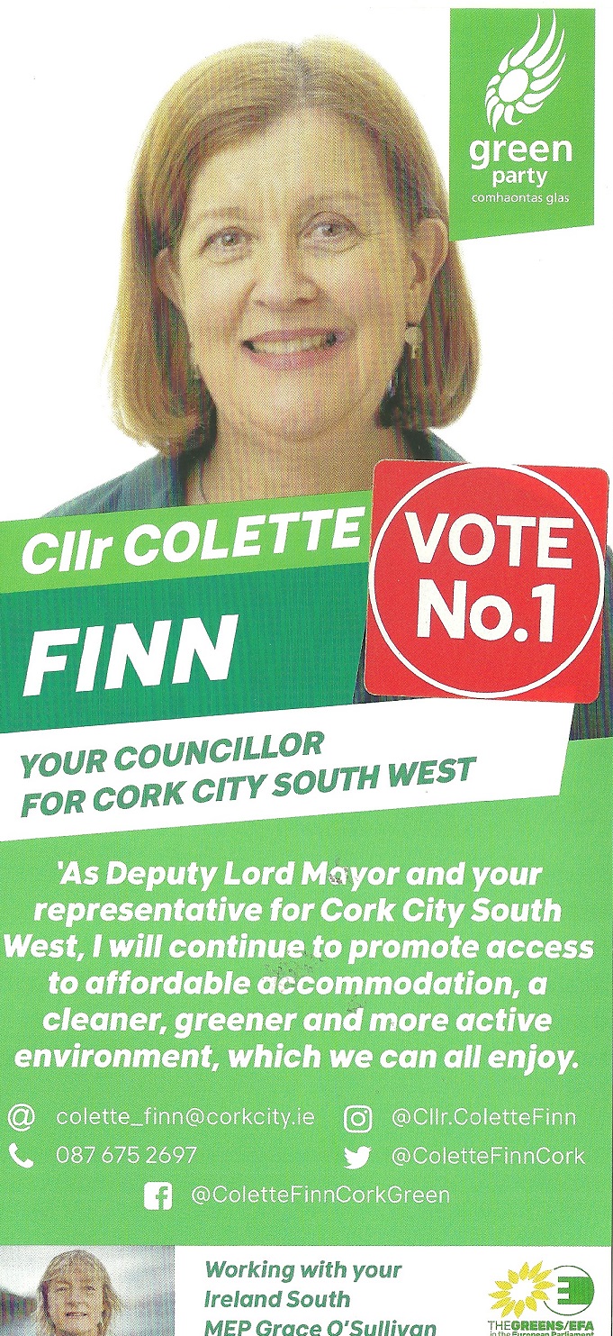 A leaflet from Colette Finn who is running for The Green Party in Cork City South West in the 2024 Local Elections