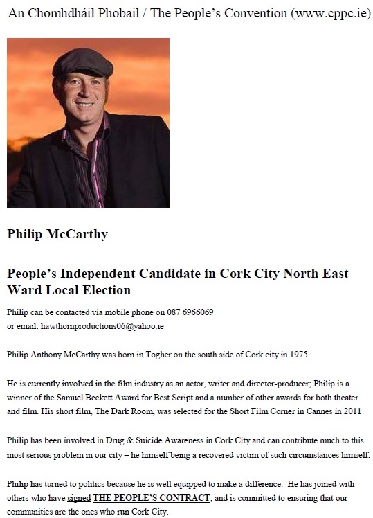 Philip McCarthy -People’s Candidate (CPPC) – Cork City North East April 9, 2014