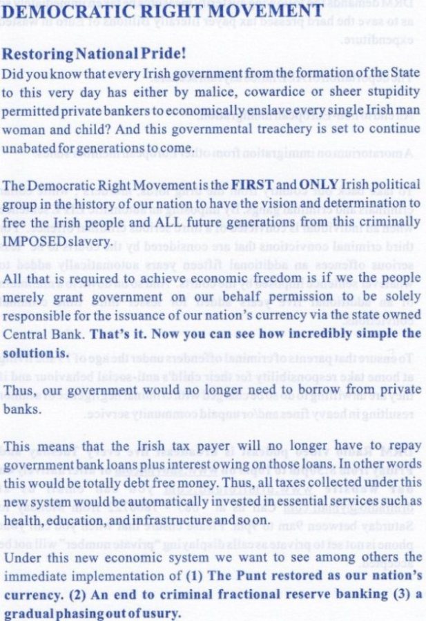 A leaflet from The Democratic Right Movement (DRM) .The Democratic Right Movement are Ireland’s right wing Nationalist movement.
