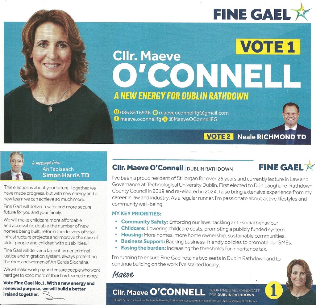 Leaflet from Maeve O’Connell – Fine Gael – Dublin Rathdown – 2024 General Election