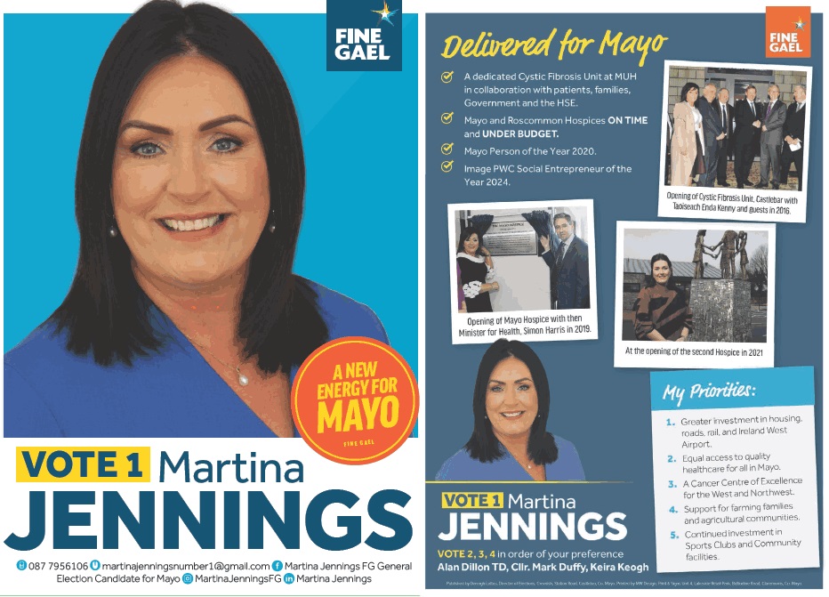 Leaflet from Martina Jennings – Fine Gael – Mayo -2024 General Election November 25, 2024