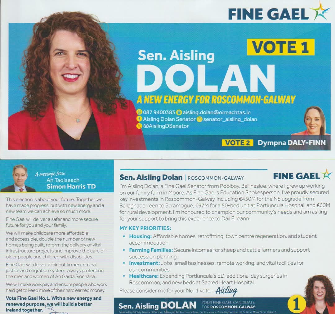 Leaflet from Aisling Dolan – Fine Gael – Roscommon Galway – 2024 General Election