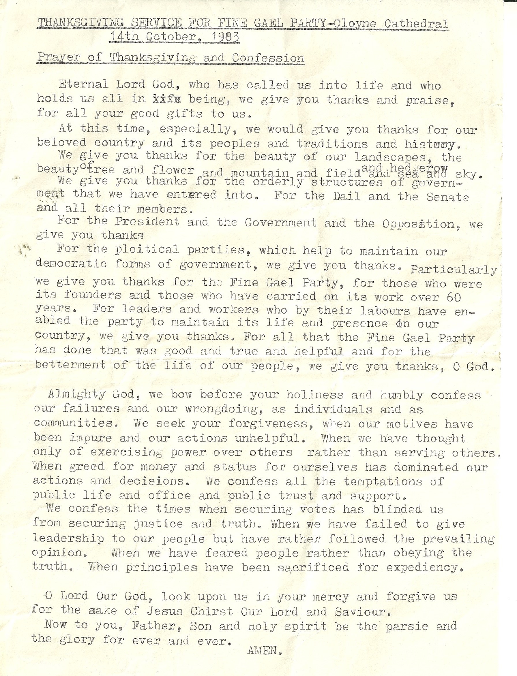From 1983 – A Thanksgiving Service for Fine Gael December 9, 2024