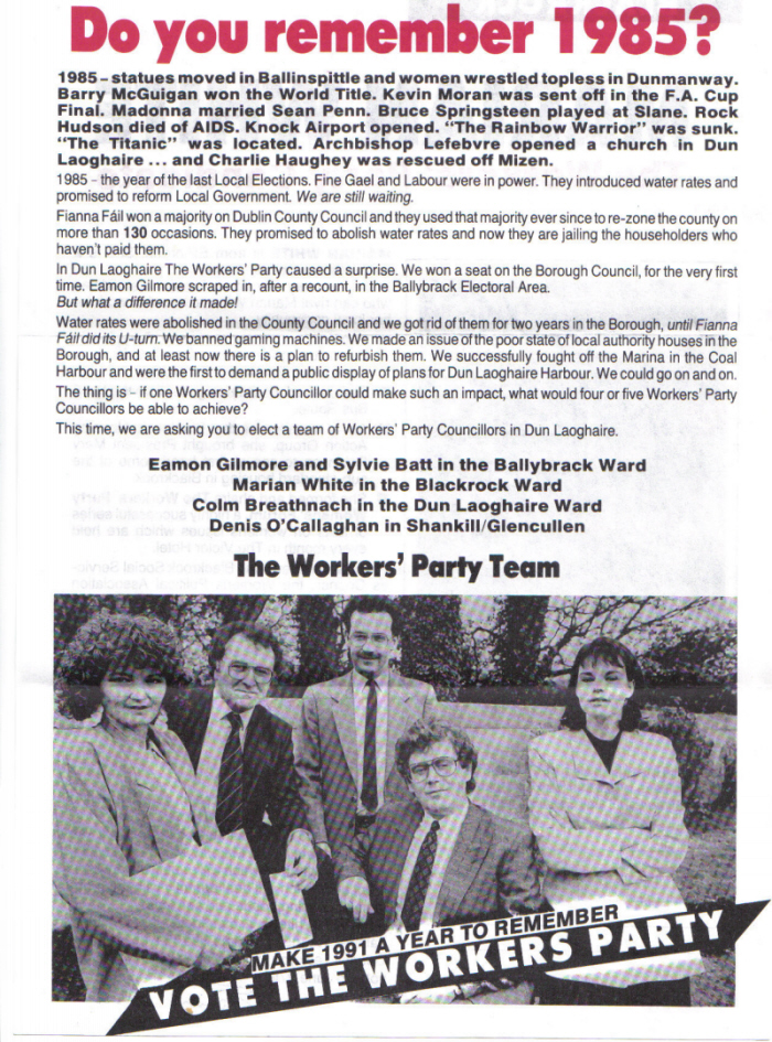 Win £10 – ‘Dun Laoghaire People’ – Eamon Gilmore -Workers Party 1986 October 29, 2009