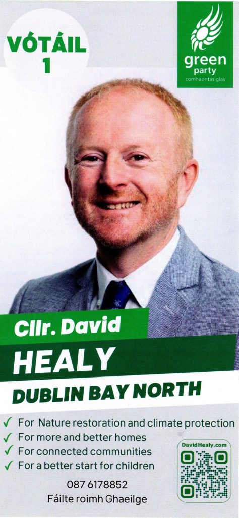 A Leaflet from David Healy who is running for The Green Party in Dublin Bay North in the 2024 General Election
