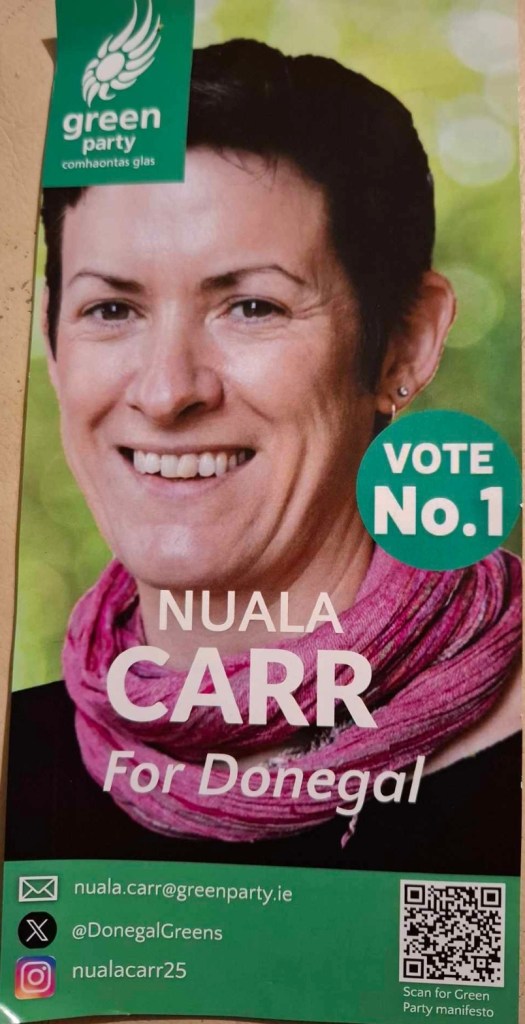 A Leaflet from Nuala Carr who is running for The Green Party in Donegal in the 2024 General Election