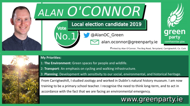 Leaflet from Marc Ó Cathasaigh who is running for The Green Party in Waterford in the 2024 General Election