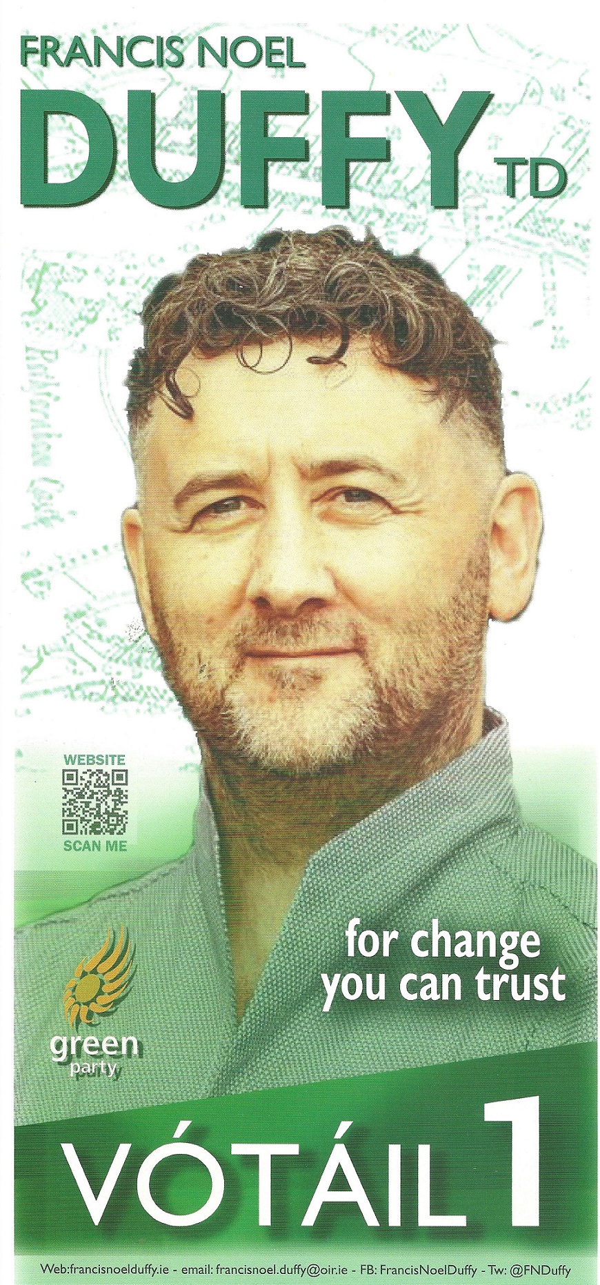 A Leaflet from Francis Noel Duffy who is running for The Green Party in Dublin South West in the 2024 General Election