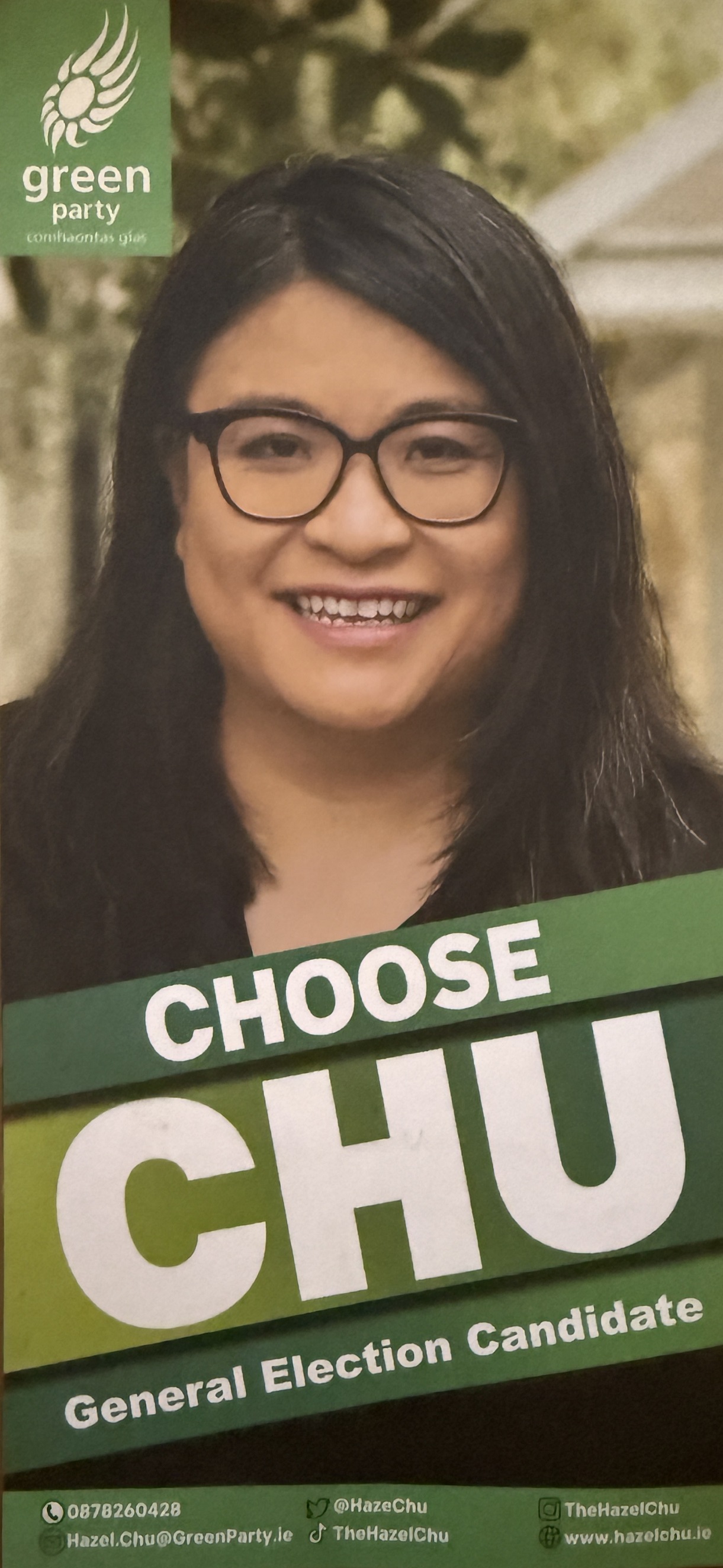 A leaflet from Hazel Chu who is running for The Green Party in Dublin Bay South in the 2024 General Election.
