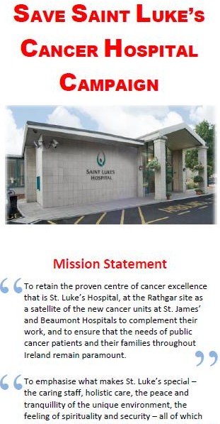 Minister Harney announced in 2005 that St James’ Hospital would be the southside centre of excellence with the consequence that down the line St Luke’s would close.