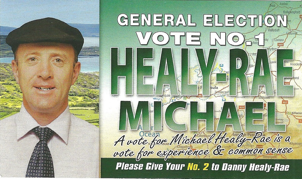 A Canvass card for Danny Healy-Rae with details on the back of “The Healy-Rae Team”. THey are Danny Healy-Rae, Michael Healy-Rae, Jackie Healy-Rae and Johnny Healy-Rae. I love the fact that Dannys home number has (pub) beside it.