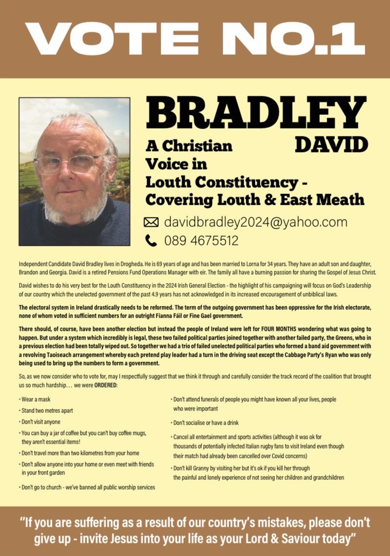 A Leaflet from David Bradley who is running as an Independent in Louth in the 2024 General Election