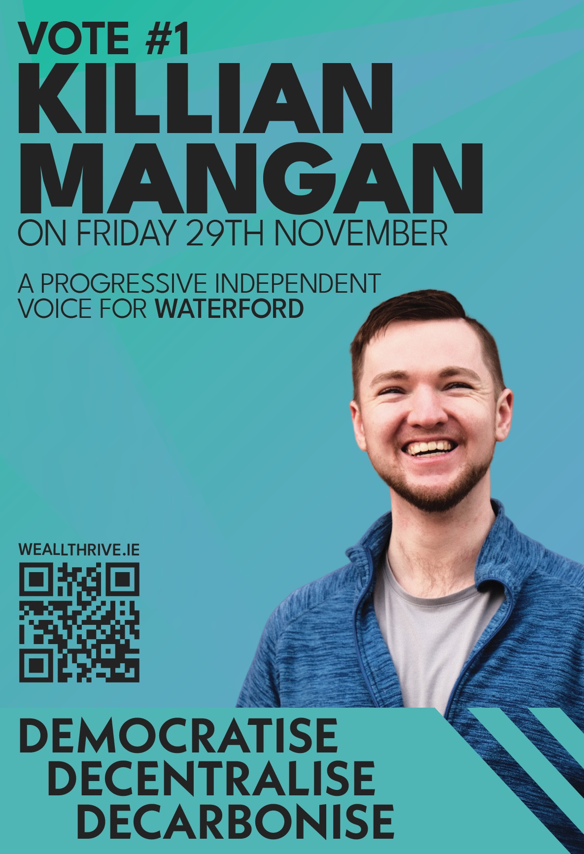 A Leaflet, as Bearla agus as Gaelige from Killian Mangan who is running as an Independent in Waterford in the 2024 General Election